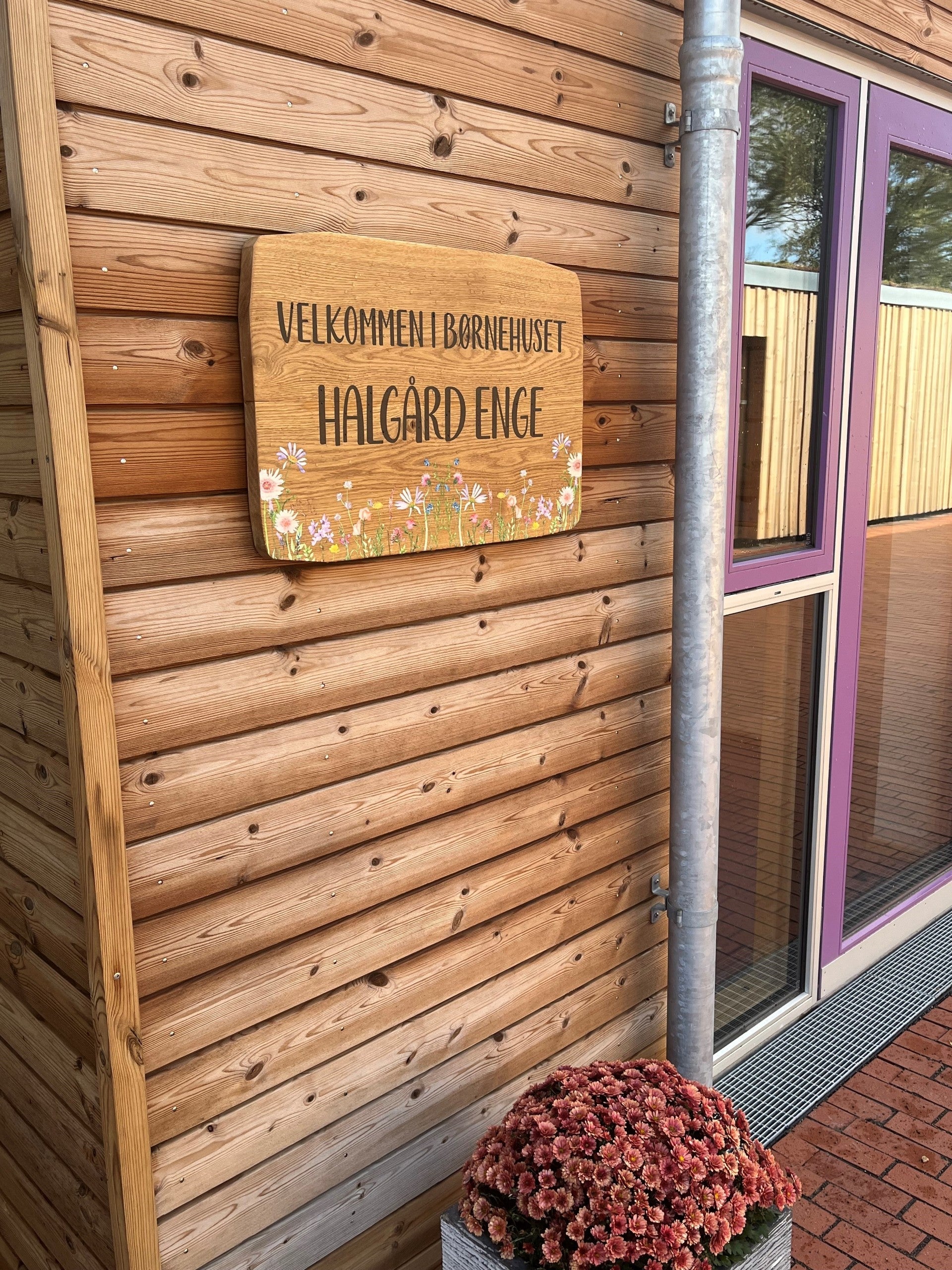 Vores børnehaveskilte er fremstillet i massivt egetræ med UV-print og beskyttende skibslak, så de både er dekorative og holdbare i det danske vejr.