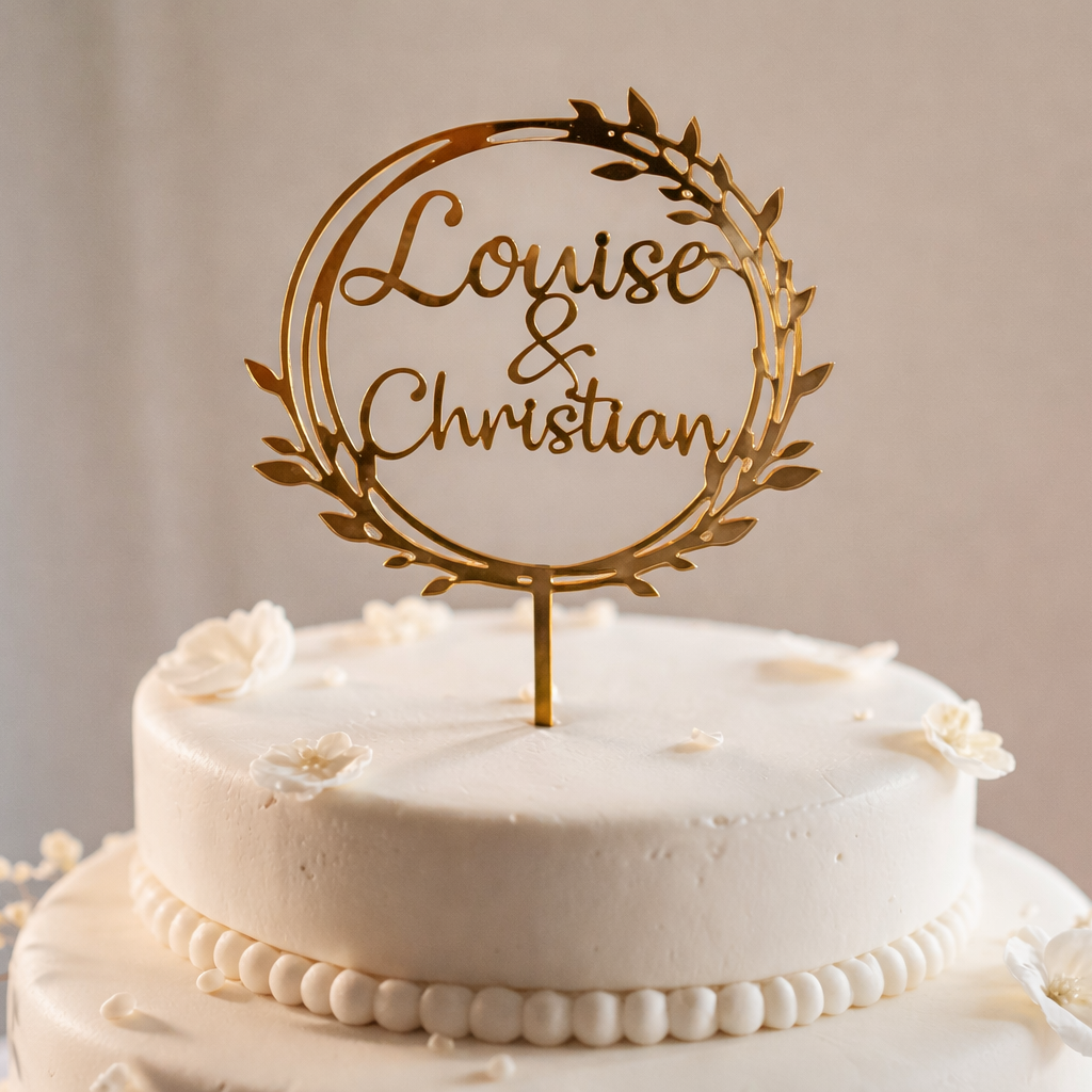 Caketopper med navn i krans