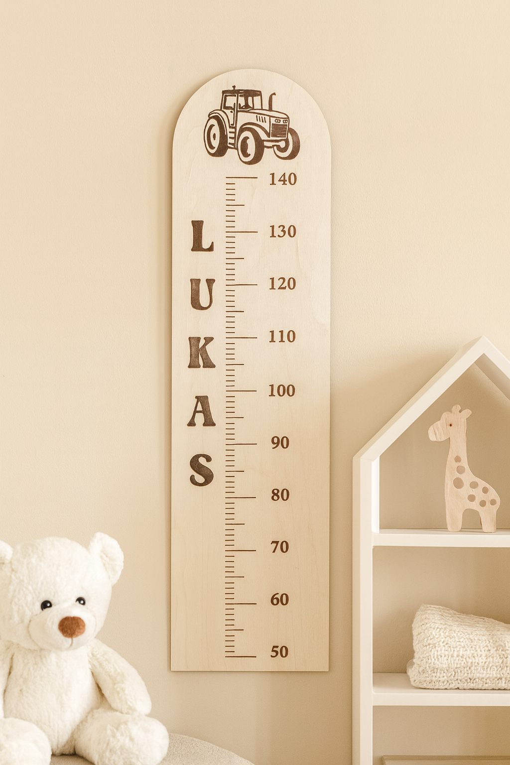 En højdemåler i træ er både dekorativ og funktionel – et lille ritual i hverdagen, som bevarer minderne om barndommens milepæle.