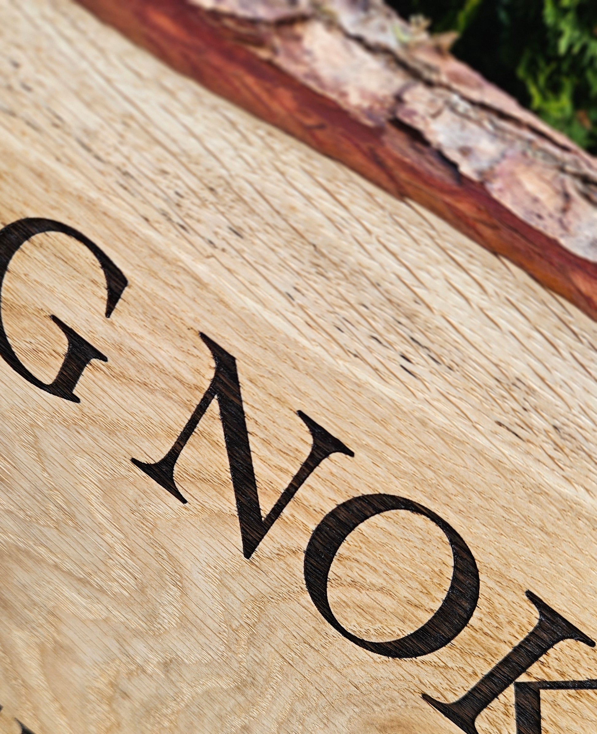 Disse plankeskilte fremstilles efter mål i enten Dansk lærk eller massivt egetræ og leveres med indgravering – velegnet til større skilte, hvor både udtryk og holdbarhed er vigtigt.