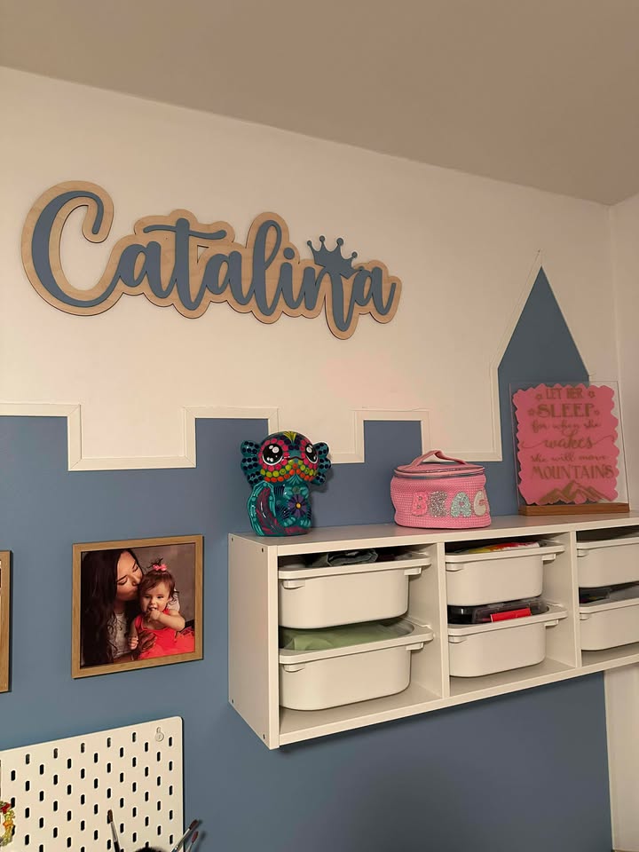 Giv børneværelset et varmt og eksklusivt udtryk med vores 3D navneskilt i træ.