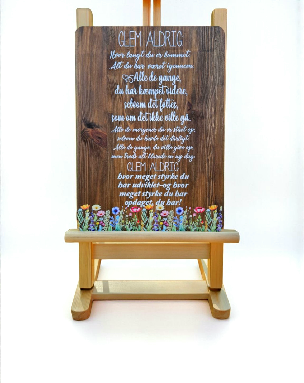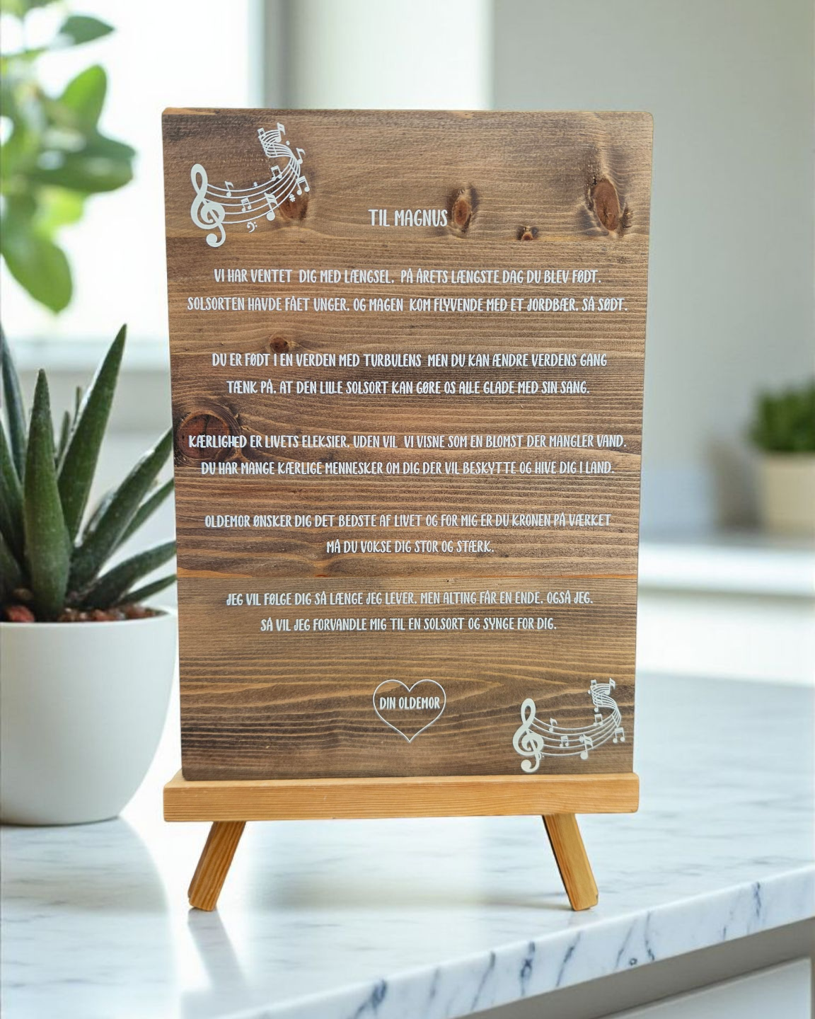 👉 Hvis du bestiller et skilt med din egen tekst, skal teksten sendes til info@renataswoodwork.dk. Du vil modtage et udkast til godkendelse, før vi starter produktionen.