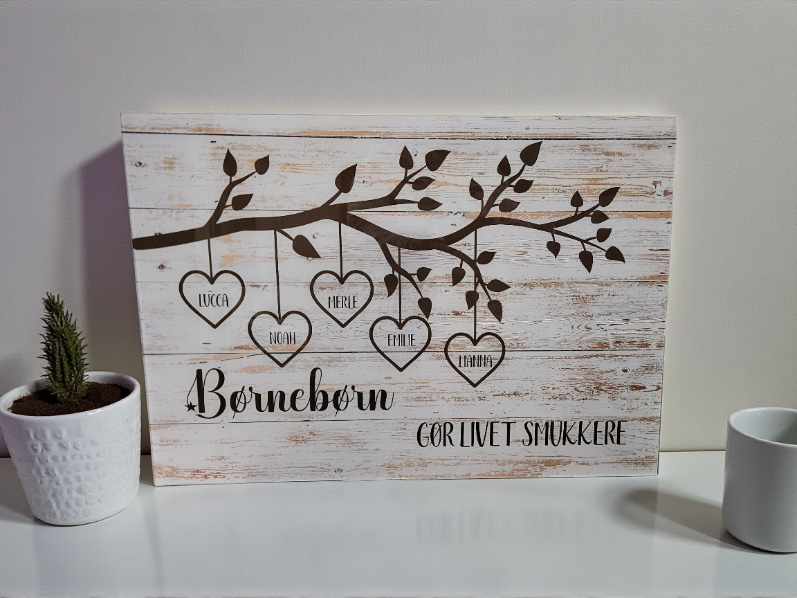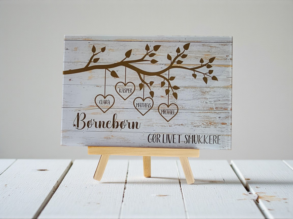 Skab et varigt minde med et personligt familietræ i akryl, designet med hjerter og navne på dem, der betyder mest.