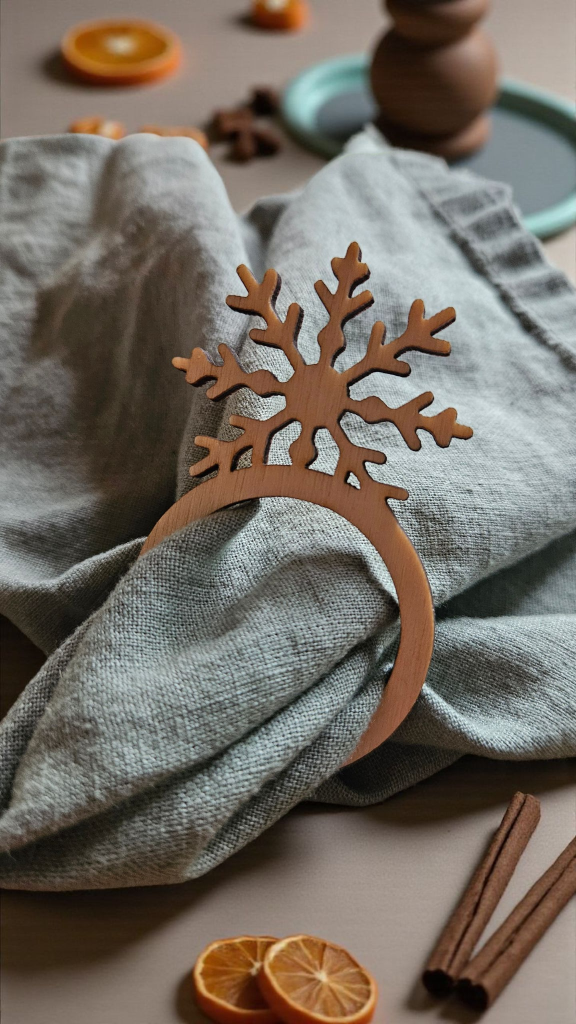 Vores servietringe i træ er designet med kærlighed og udskåret med præcision – perfekte til jul, vintermiddage og hyggelige sammenkomster.