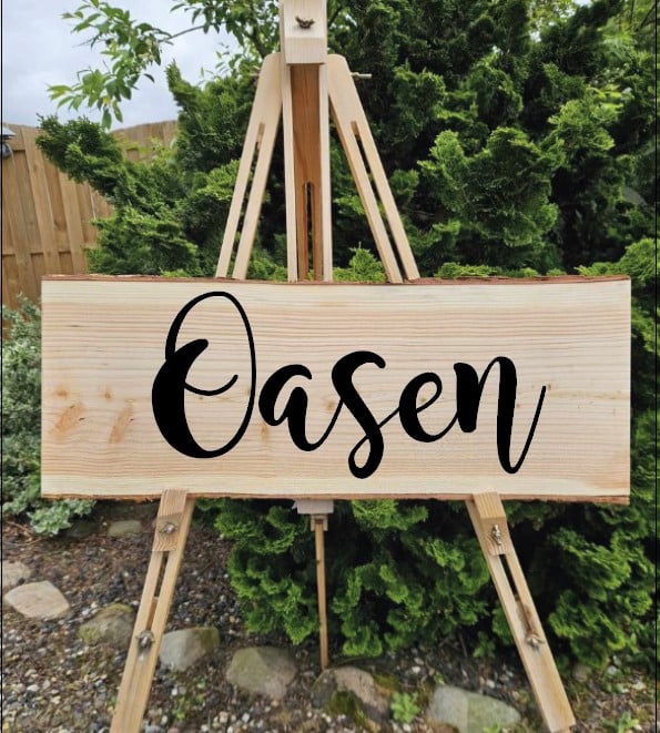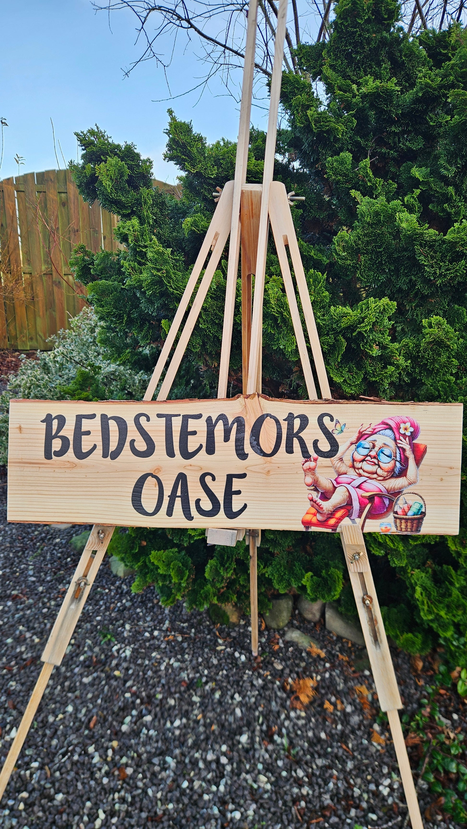 ✔ Naturlig barkkant – hvert skilt er unikt