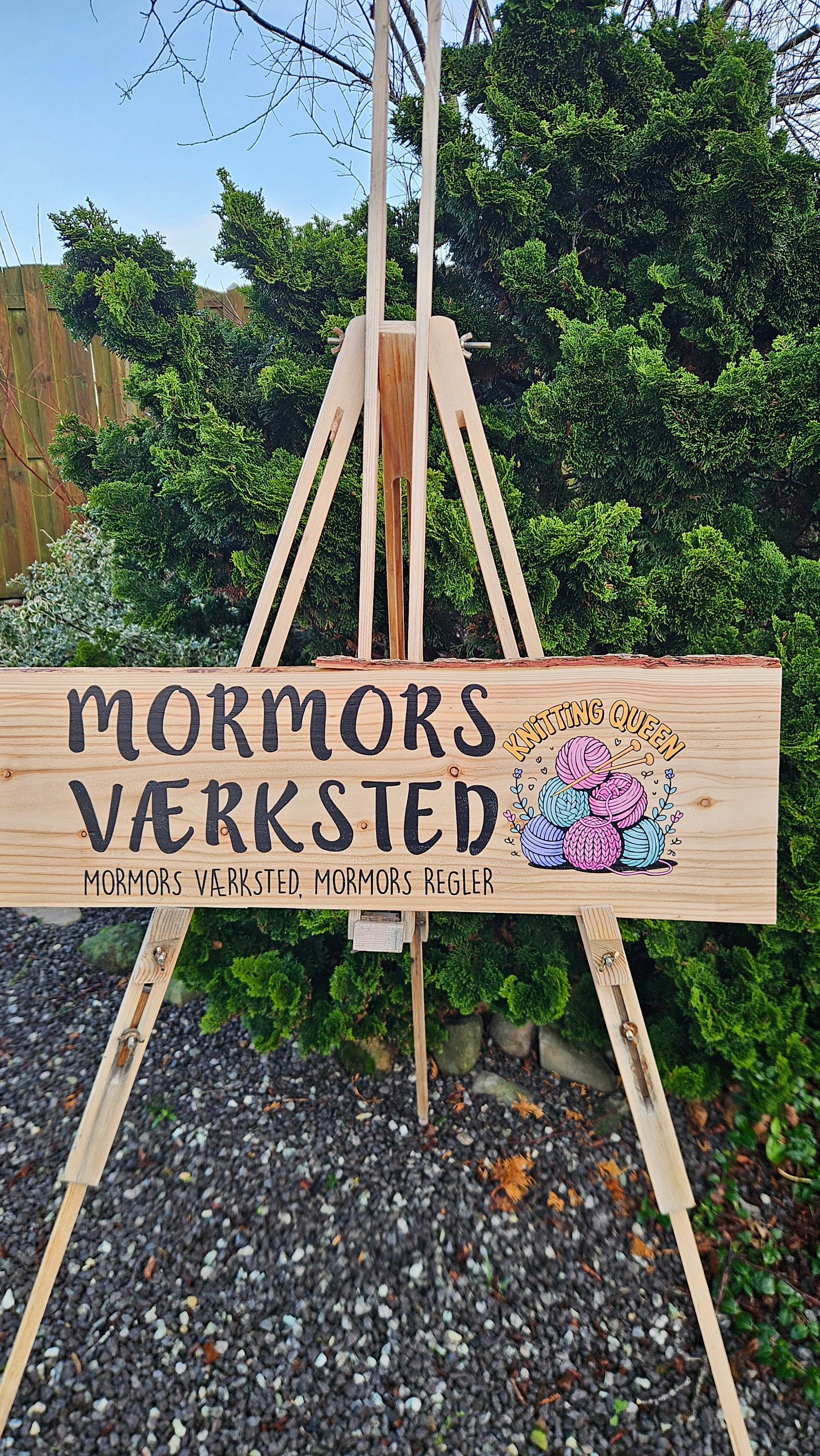 Personligt plankeskilt i massivt træ til værksted, garage, have, indkørsel og sommerhus. Rustikt skilt med navn, adresse, logo. Velegnet som værkstedsskilt, haveskilt, privatskilt, sommerhusskilt eller gårdskilt.