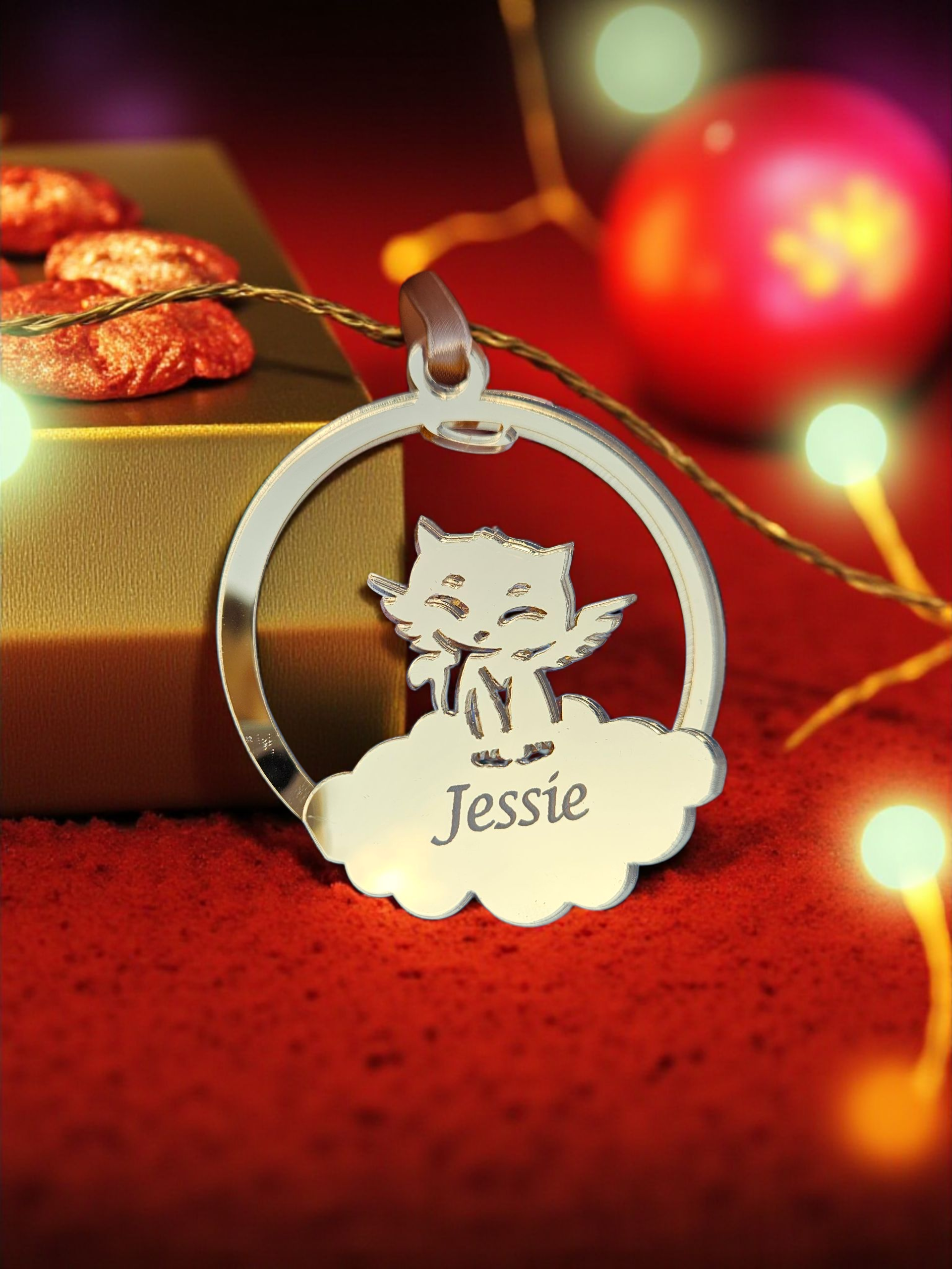 Dekorationen viser en kat med vinger og en lille sky – et symbol på ro, kærlighed og de minder, der varer ved.